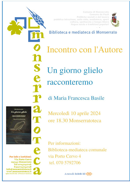 Vi aspetto Mercoledì 10 Aprile a Monserrato presso la Monserratoteca per la presentazione del mio romanzo.